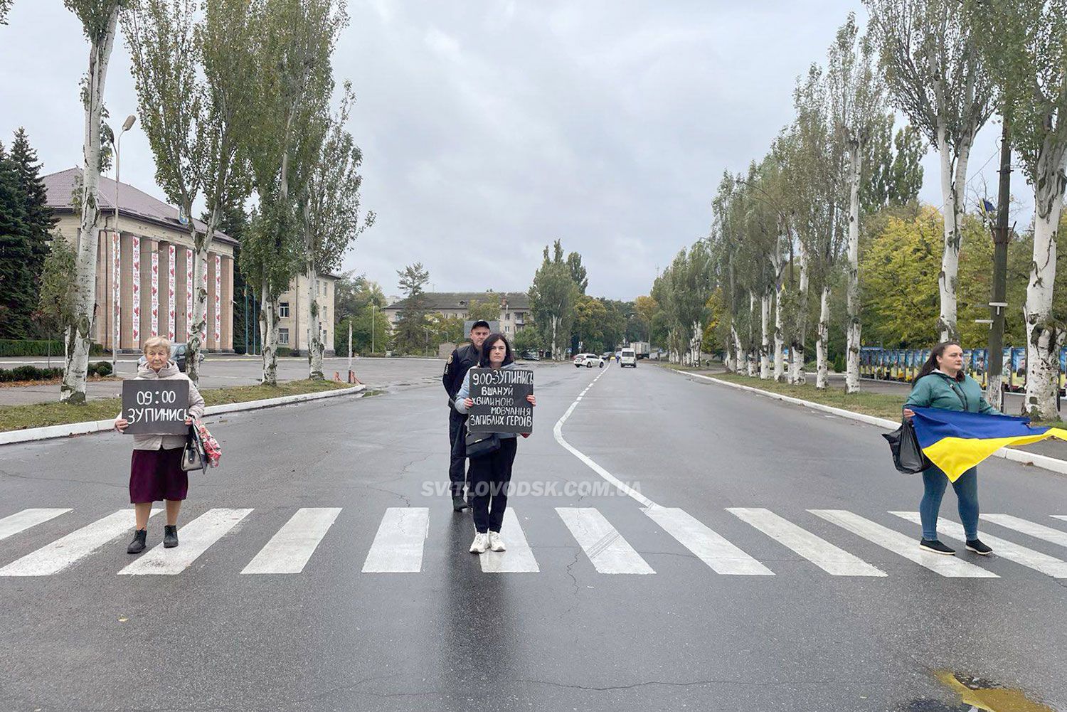 "Жителі Світловодська! Потрібна ваша дія. ЩОДЕННО закликаємо вас вийти о 9.00 до Алеї Слави із табличками-нагадування про Хвилину мовчання. Ваше завдання — інформувати людей, чому перекривається дорога, і нагадувати: "Вшануй. 9:00. Триває Хвилина мовчання." Разом ми зробимо пам’ять видимою!"